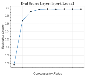You can view evaluation scores during compression in a table as they are computed. Progress is updated in real time. After greedy selection has run, per-layer optimal compression ratios are displayed in a graph.