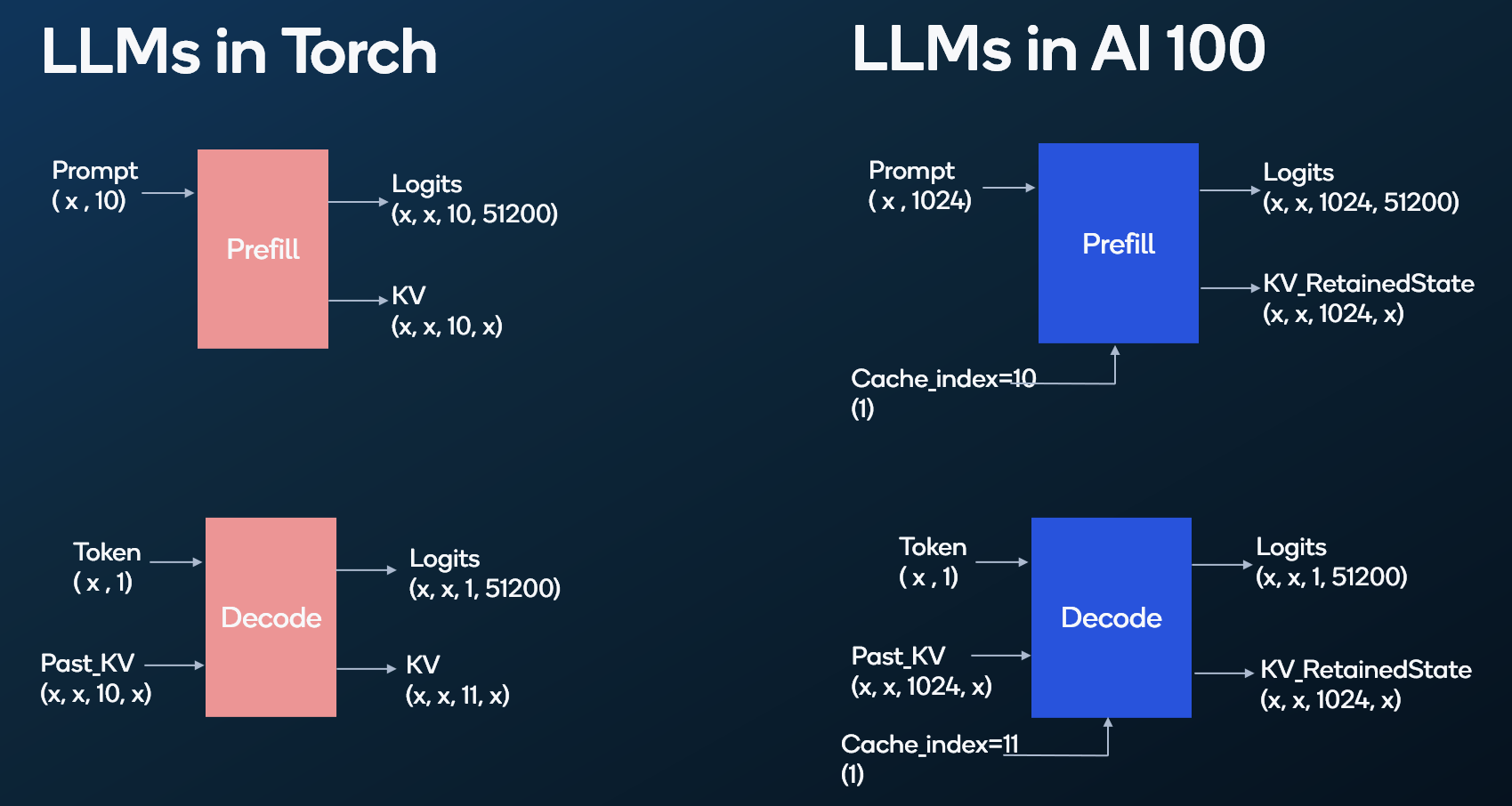 Static Input Shapes - Cloud AI 100 supports only static input shapes to make use of various efficiencies this approach offers. The open source LLM models generally support dynamic input shapes. So, these models need to be modified to support static input shapes.